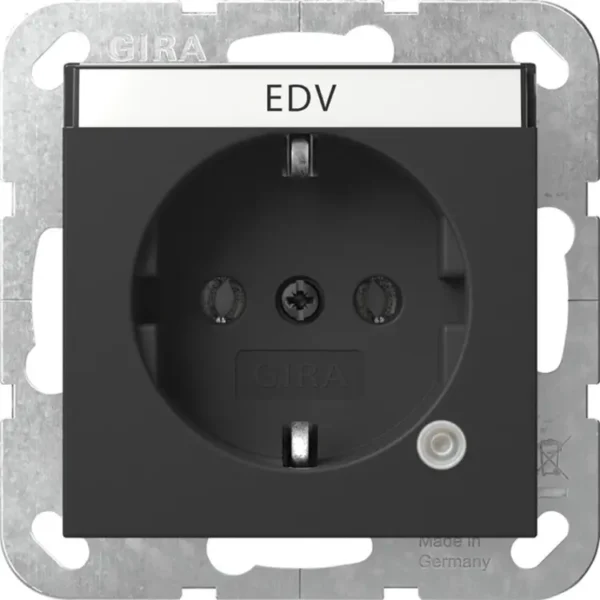 Gira wandcontactdoos randaarde met controlelamp en tekstkader System 55 zwart mat (4452005)
