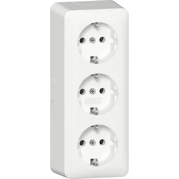 Gira ob droog stopcontact met randaarde 3-­voudig 16A 250V – zuiver wit glanzend (478913)