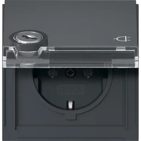 Gira wandcontactdoos randaarde met klapdeksel tekstkader en slot gelijksluitend TX44 antraciet (456967)