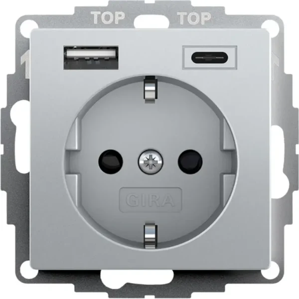 Gira wandcontactdoos randaarde USB-A en USB-C met verhoogde aanraakbeveiliging Systeem 55 aluminium mat (245926)