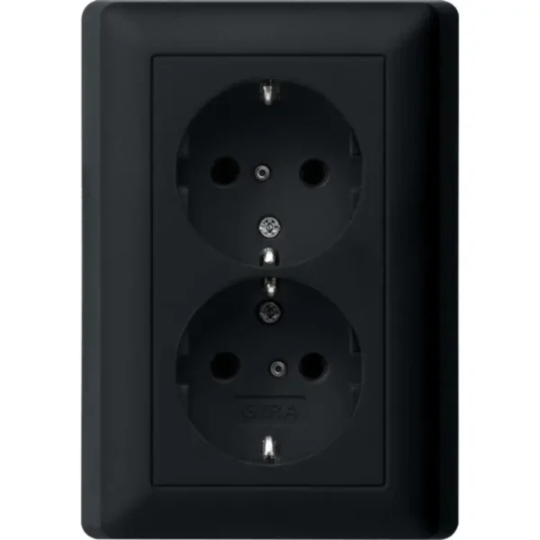 Gira wandcontactdoos randaarde verhoogde aanraakbeveiliging 2-voudig voor enkele inbouwdoos Systeem 55 zwart mat (0783005)