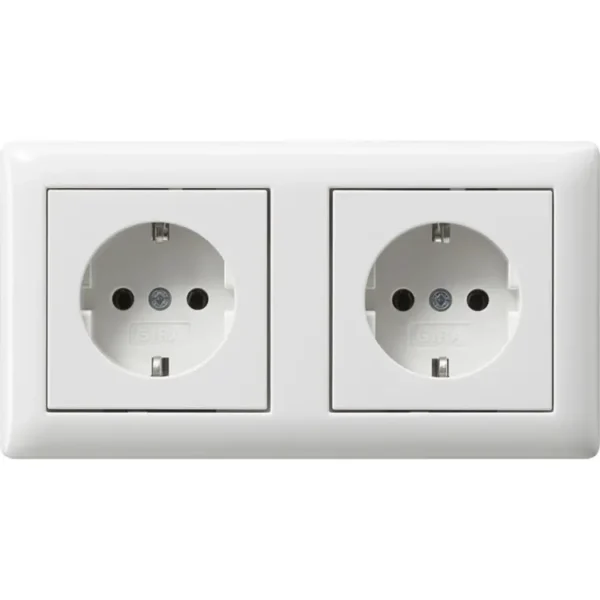 Gira wandcontactdoos 2-voudig randaarde compleet voorbedraad voor duo-inbouwdoos Systeem 55 wit glans (479303)
