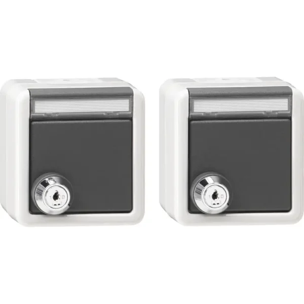 Gira wandcontactdozen randaarde gelijksluitend slot klapdeksel tekstkader opbouw IP44 set van 2 (456030)