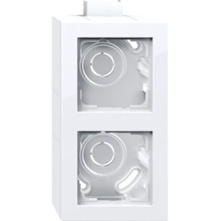 Gira tweevoudige opbouwbak uit de serie E2, kleur wit glans. Afdekraam en adapter voor K/P 25 kabelgoot zijn inbegrepen.