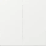 Tweevoudige rechtstaande schakelwip (knop). Let op, alleen geschikt voor dubbele pulsdrukkers en dubbele drukvlakschakelaars*. Bij het indrukken veert de schakelwip terug naar een rechte positie (dit in tegenstelling tot de normale schuine positie). Niet geschikt voor de gewone schakelaars!