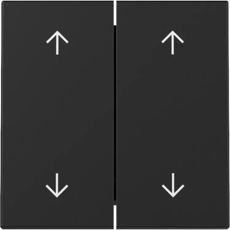 Schakelwip voor 4-voudig pulsdrukker met maakcontact*. Voor bijvoorbeeld het bedienen van 2 jaloezieën/rolluiken afzonderlijk van elkaar. Serie: Systeem 55, kleur: zwart mat.