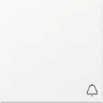 1-voudige schakelwip (knop) met symbool ‘belknop’. Geschikt voor enkele schakelaars, pulsdrukkers en drukvlakschakelaars*. Serie: Systeem 55, kleur: wit mat.
