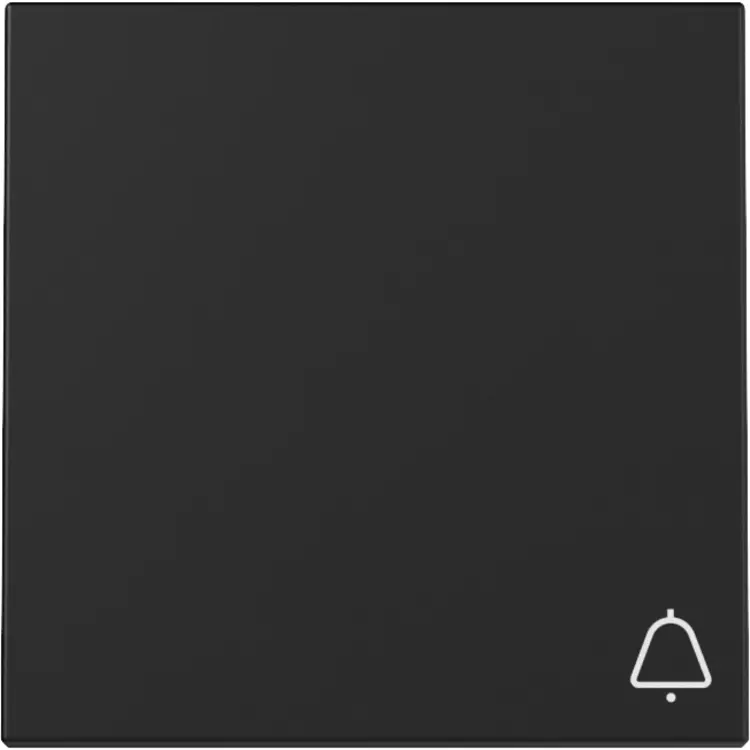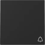 1-voudige schakelwip (knop) met symbool ‘belknop’. Geschikt voor enkele schakelaars, pulsdrukkers en drukvlakschakelaars*. Serie: Systeem 55, kleur: zwart mat.