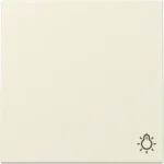 1-voudige schakelwip (knop) met symbool ‘licht’. Geschikt voor enkele schakelaars, pulsdrukkers en drukvlakschakelaars*. Serie: Systeem 55, kleur: crème glans.