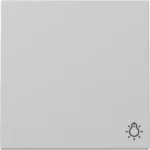 1-voudige schakelwip (knop) met symbool ‘licht’. Geschikt voor enkele schakelaars, pulsdrukkers en drukvlakschakelaars*. Serie: Systeem 55, kleur: grijs mat.