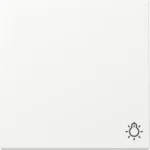 1-voudige schakelwip (knop) met symbool ‘licht’. Geschikt voor enkele schakelaars, pulsdrukkers en drukvlakschakelaars*. Serie: Systeem 55, kleur: wit mat.