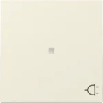 Enkelvoudige schakelwip (knop) met symbool ‘stekker’ en controlevenster. Geschikt voor enkele schakelaars, pulsdrukkers en drukvlakschakelaars met verlichting*. Serie: Systeem 55, kleur: crème glans.