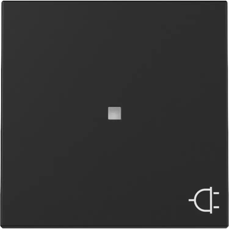 Enkelvoudige schakelwip (knop) met symbool ‘stekker’ en controlevenster. Geschikt voor enkele schakelaars, pulsdrukkers en drukvlakschakelaars met verlichting*. Serie: Systeem 55, kleur: zwart mat.