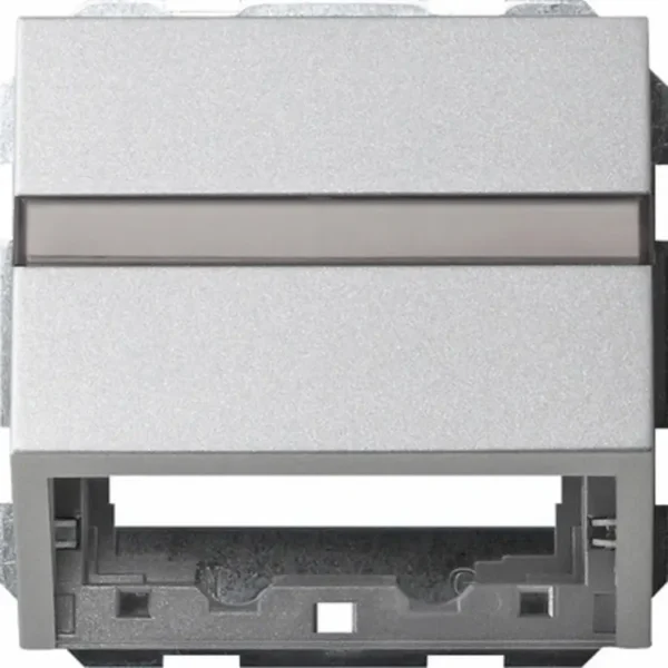 Enkelvoudige rechtstaande schakelwip (knop) met controlevenster. Alleen geschikt voor enkele pulsdrukkers en drukvlakschakelaars met verlichting*. Bij het indrukken veert de schakelwip terug naar een rechte positie. Serie: Systeem 55, kleur: wit glans.