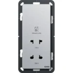 Gira wandcontactdoos randaarde USB-A en USB-C met verhoogde aanraakbeveiliging Systeem 55 aluminium mat (245926)