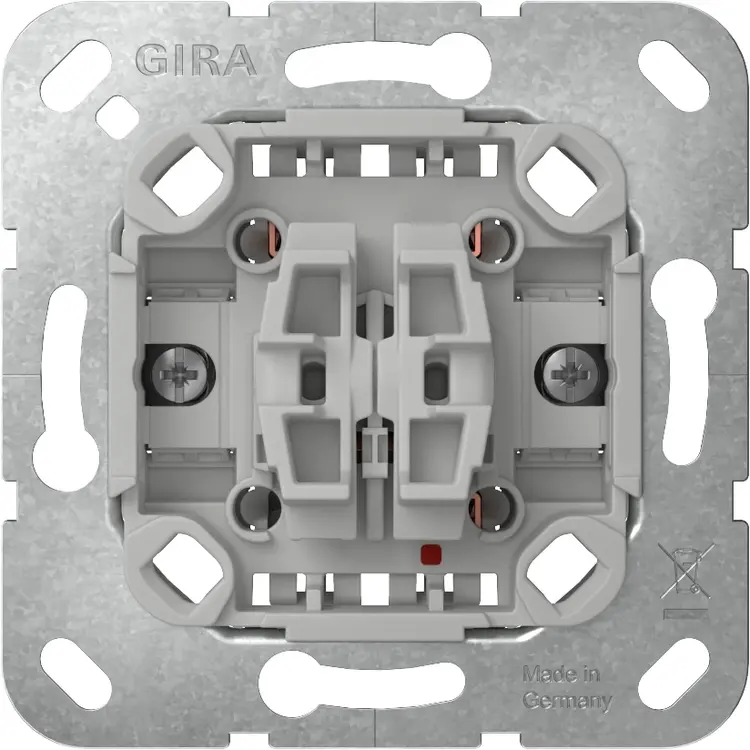 Serieschakelaar voor het schakelen van twee afzonderlijke lichtpunten, niet geschikt voor hotelschakelingen. De schakelaar kan worden gemonteerd in de inbouwdoos met schroefbevestiging en/of bevestigingsklauwen (spreidklemmen). De bedrading is aan te sluiten met steekklemmen. Afdekken met dubbele schakelwip en afdekraam.