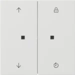 System 3000 bedieningselement met memoryfunctie en pijlsymbolen. Compatibel met System 3000 basiselement zoals bijv.: schakel-, dim- of jaloeziebasiselement. Kan in- en uitschakeltijd opslaan en in 24-uursritme herhalen. Serie: F100, kleur: wit glans.