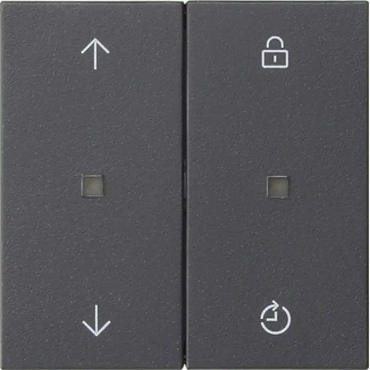 System 3000 bedieningselement met memoryfunctie en pijlsymbolen. Compatibel met System 3000 basiselement zoals bijv.: schakel-, dim- of jaloeziebasiselement. Kan in- en uitschakeltijd opslaan en in 24-uursritme herhalen. Systeem 55, antraciet mat.
