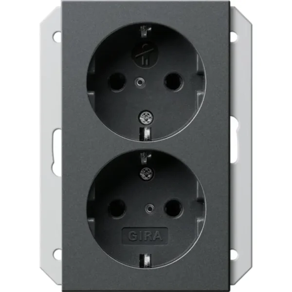 Gira wandcontactdoos 2-voudig randaarde Safety+ voor ovale 1,5 inbouwdoos Systeem 55 antraciet mat (273528)