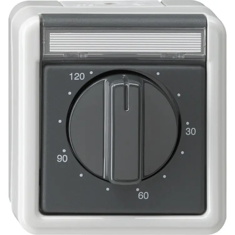 Gira tijdschakelaar 2-polig 120 minuten tekstkader opbouw IP44 (032130)