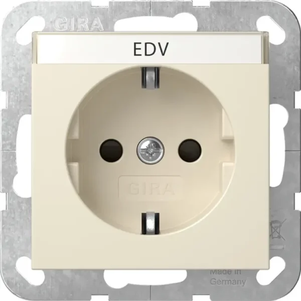 Gira wandcontactdoos randaarde met verhoogde aanraakbeveiliging en tekstkader Systeem 55 creme glans (446201)