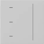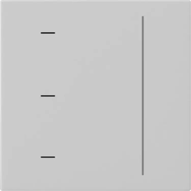 System 3000 touchopzetstuk. Besturing door licht aanraken of vegen. Met een System 3000 dimmer-basiselement kunnen drie lichtsterktes worden opgeslagen. Looptijd en tussenpositie instelbaar met System 3000 jaloeziebasiselement. Systeem 55, grijs mat.