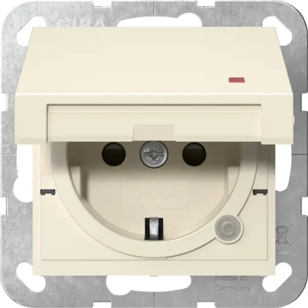Gira wandcontactdoos randaarde met verhoogde aanraakbeveiliging klapdeksel en controlelamp Systeem 55 creme glans (455201)