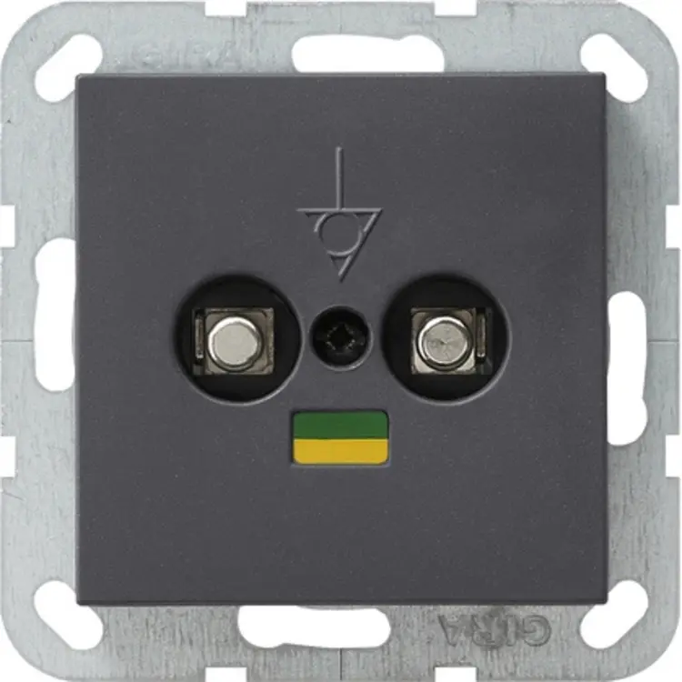 Gira Systeem 55 potentiaalvereffeningscontactdoos, kunststof, antraciet, beschermingsgraad (IP) IP21, halogeenvrij, variant antraciet, kwaliteitsklasse thermoplast, inbouw, oppervlaktebescherming overig, samenstelling basiselement met centrale, uitvoering contactdoos 2-voudig