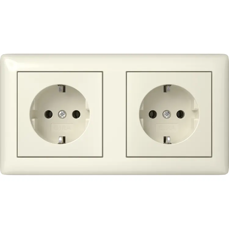 Gira wandcontactdoos 2-voudig randaarde compleet voorbedraad Type 10 Systeem 55 creme glans (482101)