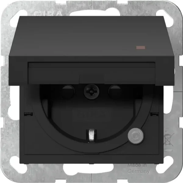 Gira wandcontactdoos randaarde met verhoogde aanraakbeveiliging klapdeksel en controlelamp Systeem 55 zwart mat (4552005)