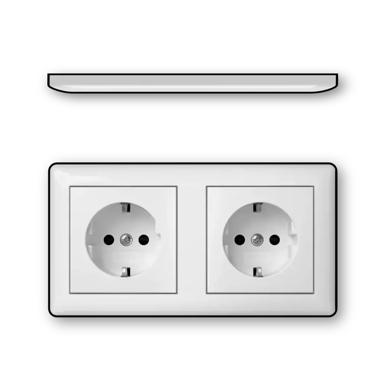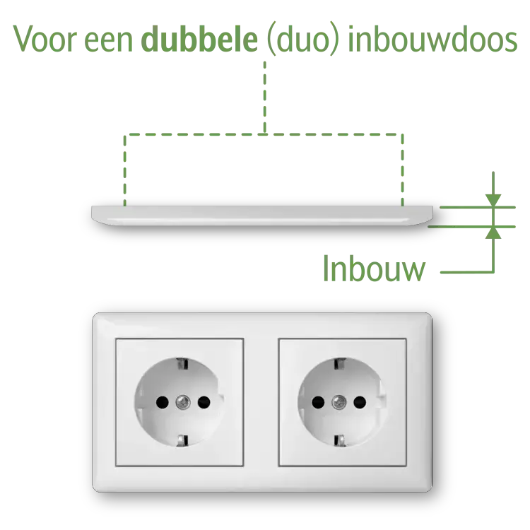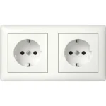 Dubbele wandcontactdoos met randaarde en Safety Plus (verhoogde aanraakbeveiliging), compleet met afdekraam. Voorbedraad; de achterzijde vormt één geheel dat niet los te halen is. Het is niet mogelijk om dit te splitsen in twee losse enkele stopcontacten. Daarom past het niet in twee enkele inbouwdozen, maar is een speciale dubbele (duo) inbouwdoos vereist. Geschikt voor inbouwdoos 2-voudig, bijvoorbeeld Kaiser, Attema UD50 en PVD 50, HAF 250 en G250, alsook voor click-it wandgootdozen Van Geel.