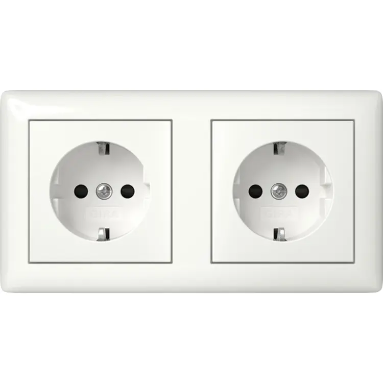 Gira wandcontactdoos 2-voudig randaarde Safety Plus compleet voorbedraad voor duo-inbouwdoos Standaard 55 wit glans (478603)