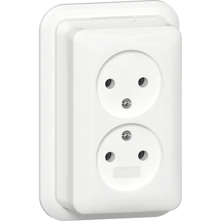 Gira wandcontactdoos 2-voudig zonder randaarde opbouw wit (479111)