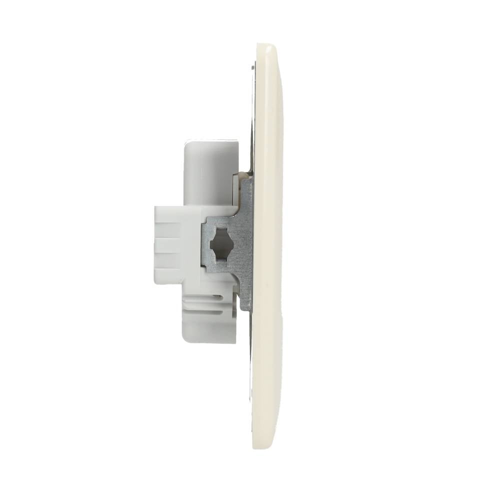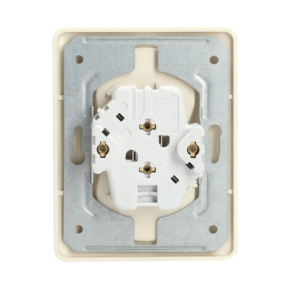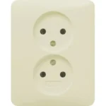Dubbele wandcontactdoos zonder randaarde, geschikt voor een enkele (ronde) inbouwdoos, Standaard 55, crème glans. Bedrading bevestigen met steekklemmen