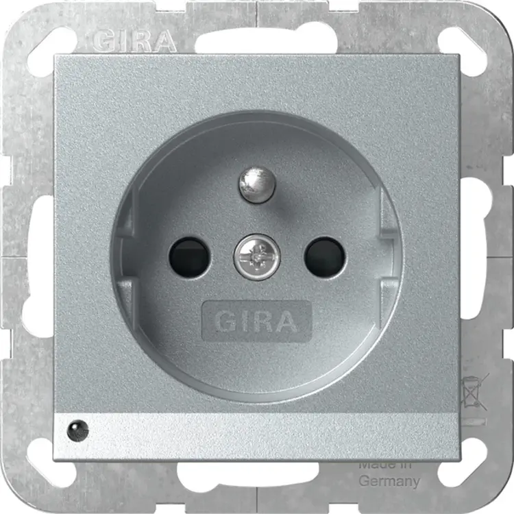 Gira wandcontactdoos penaarde Belgie verhoogde aanraakbeveiliging met LED orientatielicht Systeem 55 aluminium mat (448926)
