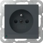 Stopcontact penaarde Belgie verhoogde aanraakbeveiliging met LED orientatielicht Systeem 55 antraciet mat.