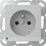 Stopcontact penaarde Belgie verhoogde aanraakbeveiliging met LED orientatielicht Systeem 55 grijs mat.
