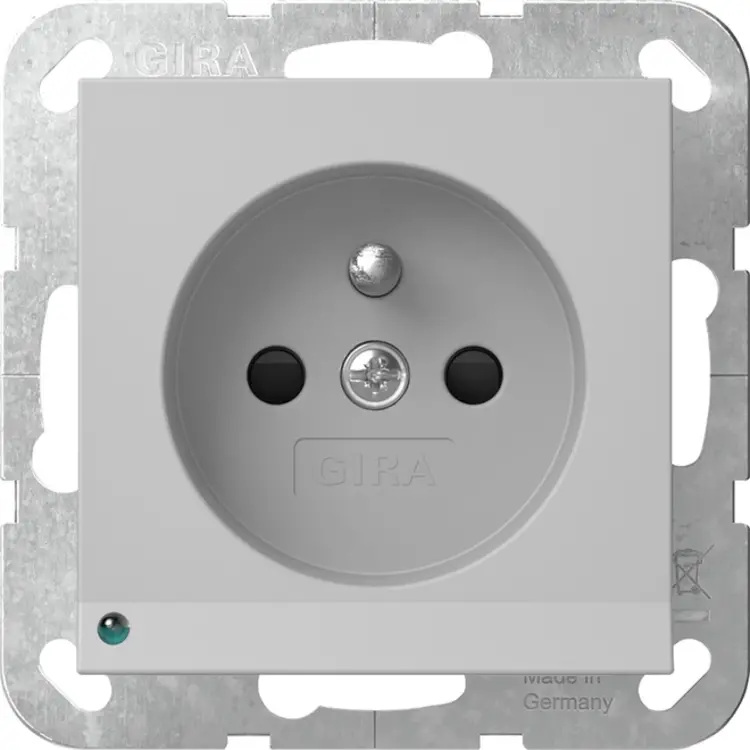 Gira wandcontactdoos penaarde Belgie verhoogde aanraakbeveiliging met LED orientatielicht Systeem 55 grijs mat (4489015)