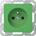 Stopcontact met penaarde (voor België) en verhoogde aanraakbeveiliging, Serie: Systeem 55, kleur: groen glans. Bedrading bevestigen middels steekklemmen.