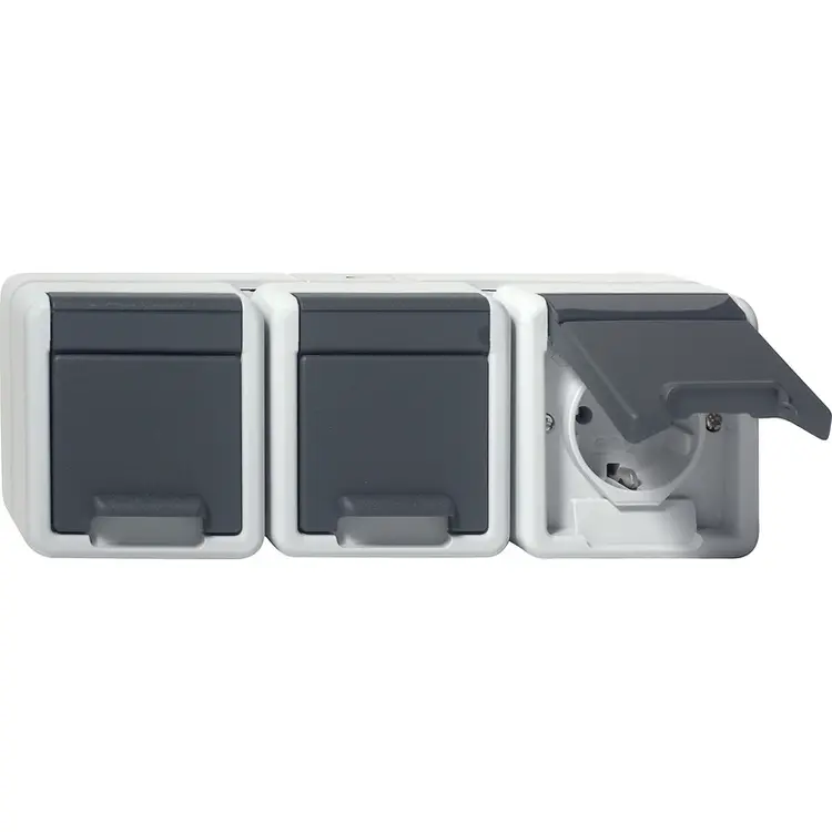 Gira wandcontactdoos randaarde 3-voudig horizontaal klapdeksel opbouw IP44 (478930)
