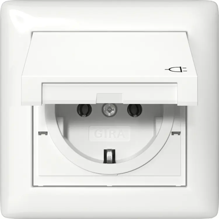 Gira wandcontactdoos randaarde klapdeksel IP44 compleet Systeem 55 wit glans (415703)