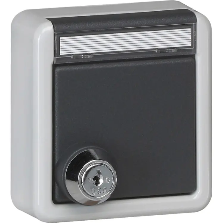 Gira wandcontactdoos randaarde klapdeksel tekstkader en slot opbouw IP44 (456735)
