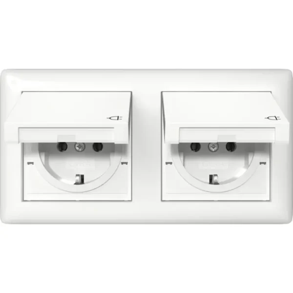 Gira wandcontactdoos randaarde klapdeksel 2-voudig IP44 compleet Standaard 55 wit glans (415803)