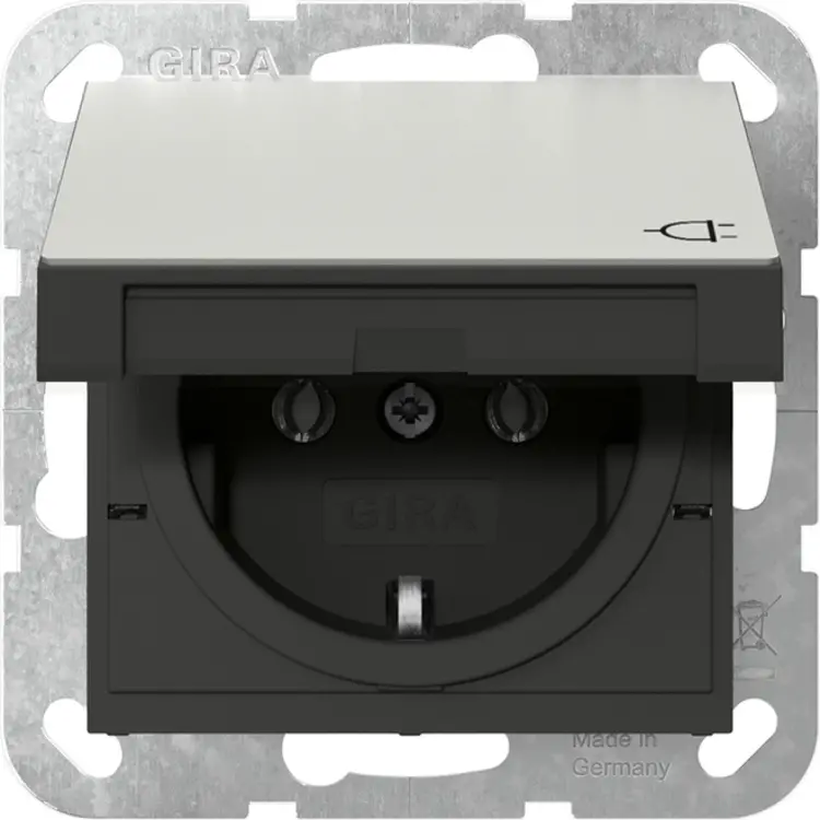 Gira wandcontactdoos randaarde met klapdeksel Systeem 55 edelstaal (4454600)