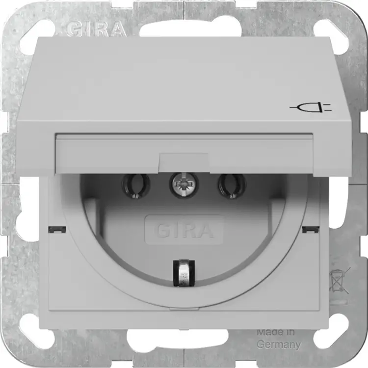 Gira wandcontactdoos randaarde met klapdeksel Systeem 55 grijs mat (4454015)