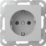 Stopcontact (schakelmateriaal), overig, grijs mat, 1 eenheid, uitvoering randaarde, inbouw, afdekking centraalplaat. Met spreidklemmen.