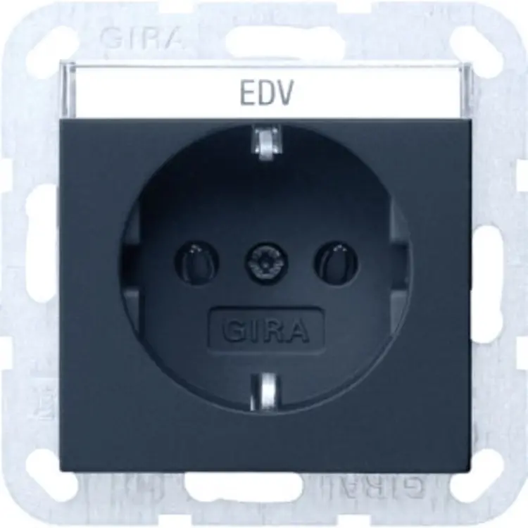 Gira wandcontactdoos randaarde met tekstkader Systeem 55 zwart mat (4457005)
