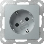 Gira wandcontactdoos randaarde met verhoogde aanraakbeveiliging 30 graden gedraaid Systeem 55 aluminium mat (441826)