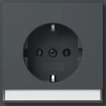 Stopcontact randaarde verhoogde aanraakbeveiliging tekstkader TX44 antraciet. Niet geschikt voor installatie in vochtige ruimtes vanwege beschermingsgraad IP20. Bij montage moet ook de afdichtflens van het afdekraam worden gebruikt.