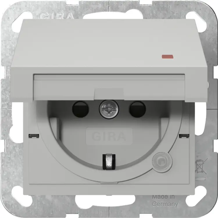 Gira wandcontactdoos randaarde met verhoogde aanraakbeveiliging klapdeksel en controlelamp Systeem 55 grijs mat (4552015)